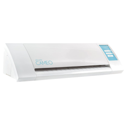 The Silhouette Cameo is a programmable cutting machine. It uses a small blade to cut various materials such as paper, cardstock, vinyl, and fabric up to 12 inches wide. If you are looking for a diecut machine, one is available in the CRRC Workshop upstairs. [Silhouette 101]
